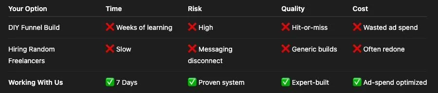 We’re only taking a small number of funnel builds per month to keep turnaround under 7 days.